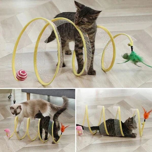 💛 Easy to store - Storage is very simple, just the head and tail don't together tunnel can be stored, does not take up space at all, and is very light, a cat toy that can be taken out.